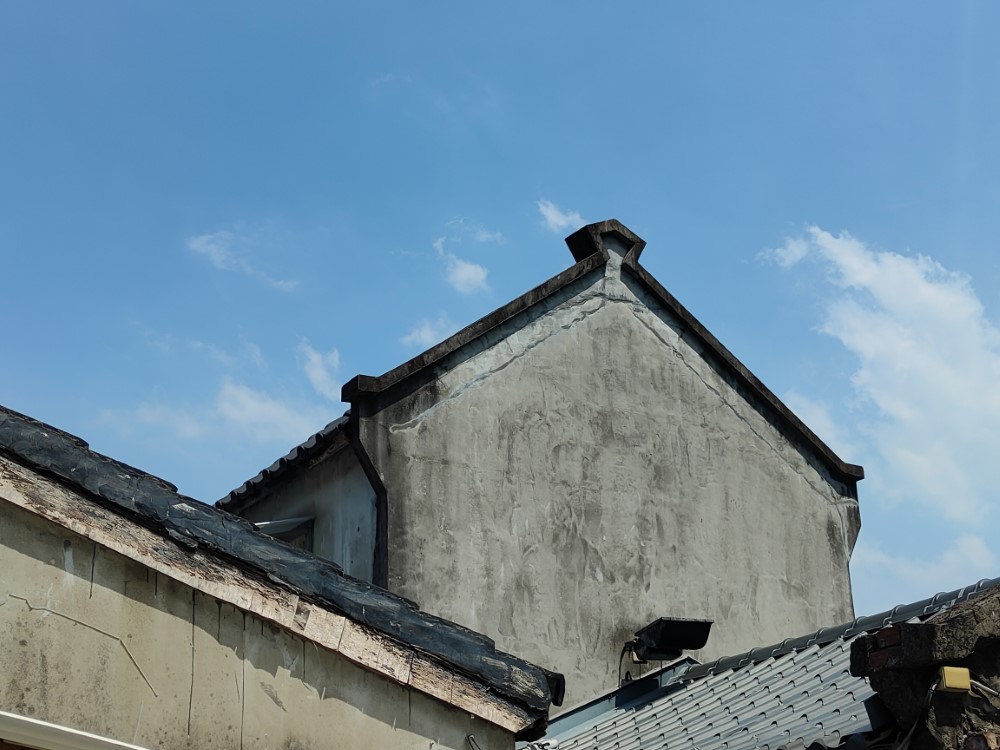 使用 2X 變焦拍攝,與 1X 差異不大,牆壁的裂縫與屋瓦的輪廓依然清晰。