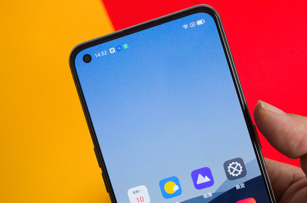另外,realme GT 為平面螢幕,因此不用擔心會發生曲面螢幕誤觸的狀況。螢幕為三邊窄框,「下巴」明顯突出一點,視覺上看還算清爽。