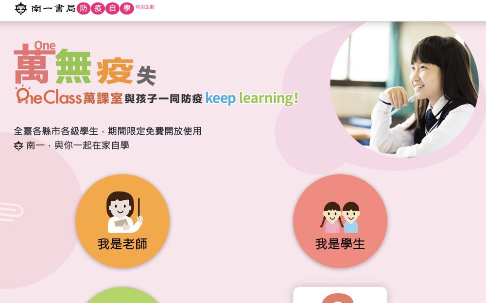 教育局也考量多數家長也必須上班,學校不可貿然全面停課,但若家長有疫情考量想幫孩子請假,將從寬認定,不列入紀錄。對此教育出版社南一、翰林與康軒也紛紛推出線上教育平台。