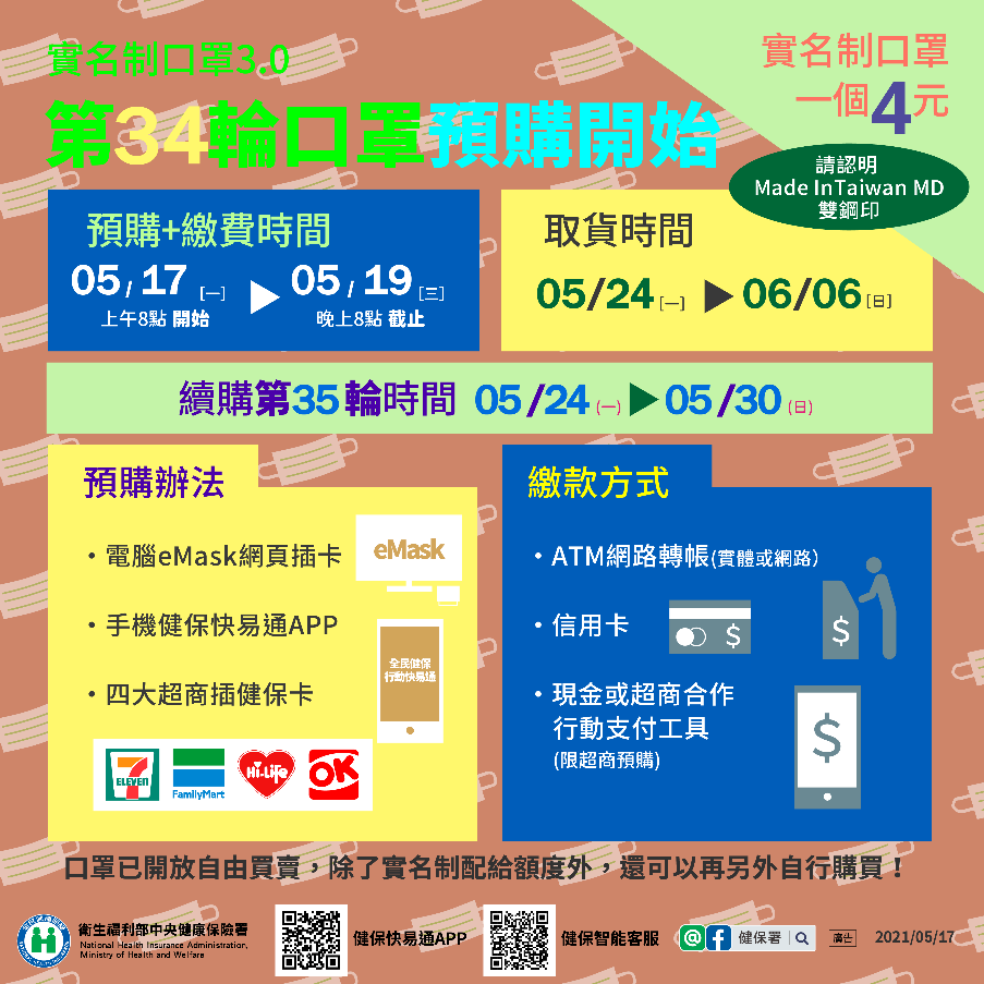 例。相關疫情調查仍舊在持續進行中。對此健保署也呼籲第 34 輪雙鋼印 (Made In Taiwan/MD) 口罩預購將自今日(17 日) 起於健保快易通開放預購!