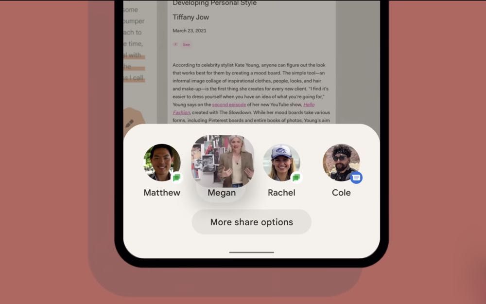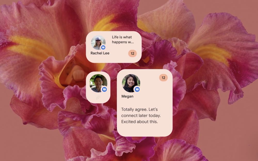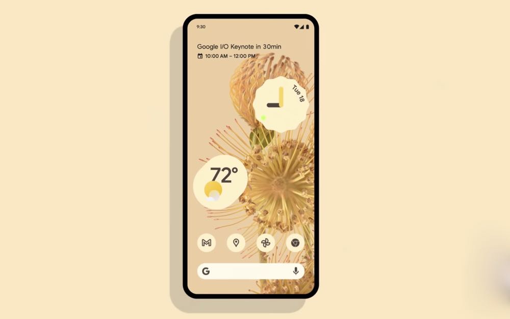Android 12 此次主題是「Material You」設計語言,指的就是要讓使用者能夠自行打造出屬於自己風格的手機。例如只要挑選一張想要當為主視覺的桌布,系統就會進行判斷來決定那些顏色是主要顏色,那些是互補顏色,接著便會將顏色應用到通知列、鎖定螢幕、音量控制與其他小工具的圖示上,讓整體視覺變的相當具有個人化。