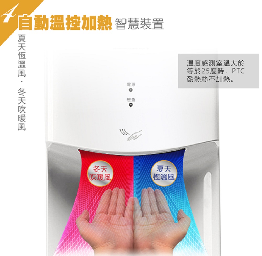 值得一提的是,它還具備自動溫控加熱裝置,當溫度感測器偵測到室內大於或等於 25 度時,PTC 發熱絲就不會加熱,低於 25 度時就會自動加熱,達到夏天恆溫風、冬天吹暖風的效果。