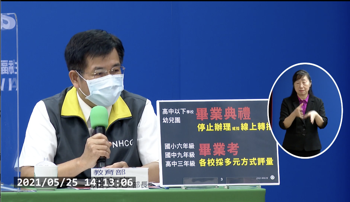 除了高中以下至幼兒園的畢業典禮將停止辦理外,國小六年級、國中九年級與高中三年級 交由各校採多元方式進行評量。