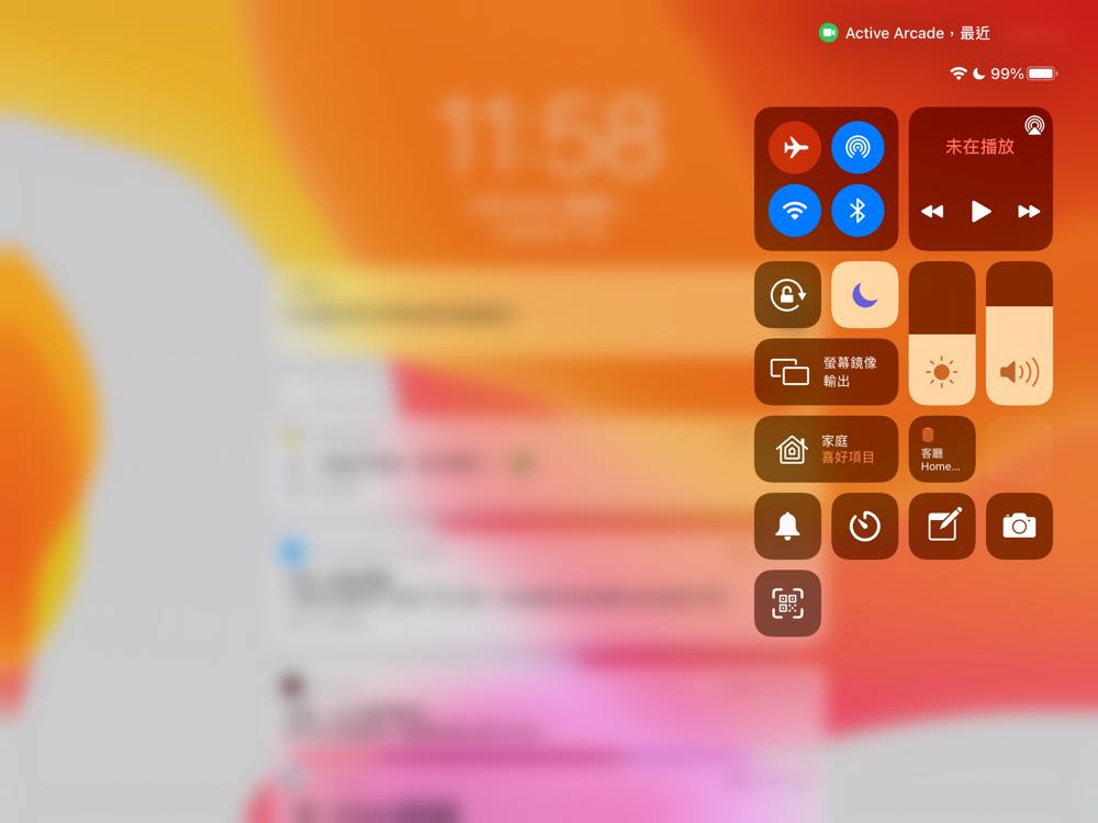 - 在 iPhone X 的後續機型 或是安裝 iPadOS 13 或以上版本的 iPad 上,是從螢幕右上角向下滑動叫出。