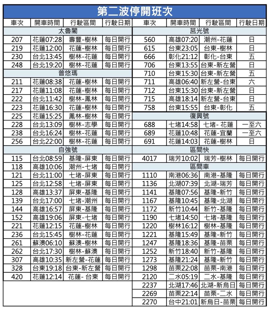 各級列車 51 列次,共 97 列次; 高鐵則是自 27 日(四)至 6 月 10 日(四)實施短期班表,由每週 845 班次再調至每週 556 班次。