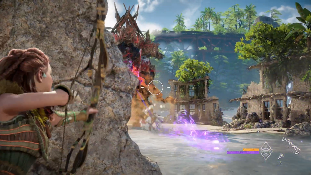 這片危險又陌生的領域,充滿了挑戰與威脅,但是亞蘿伊也有新道具幫助。拉鉤發射器讓攀爬更迅速,助亞蘿伊快速逃離險境;盾翼則讓她可以從高處安全降落(或從天而降突襲敵人);有了潛水面具,更能探索全新的水底世界。另外,亞蘿伊的 Focus 也大幅升級,除了能標記可自由攀爬的區域,更能覆蓋更多機器的指令,將機器變成坐騎或戰鬥幫手。
