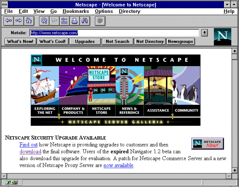 (Netscape Navigator 1.2 使用介面 / 圖片來源:wikiand)