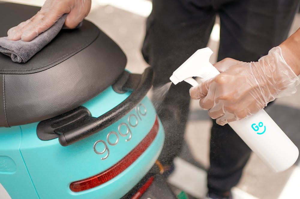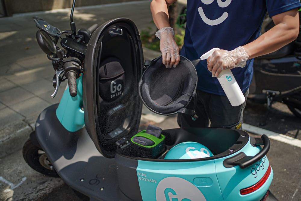 GoShare 在六大縣市的營運區域內,GoShare 均安排巡檢與消毒專責團隊,確保每日完成車輛清消,對用戶常接觸到的車身處與配件特別加強消毒,包含安全帽、儀表板、後照鏡、座墊、座墊巧納袋、電池握把、機車把手、後扶手等,並每日回報各地政府消毒完成情況。