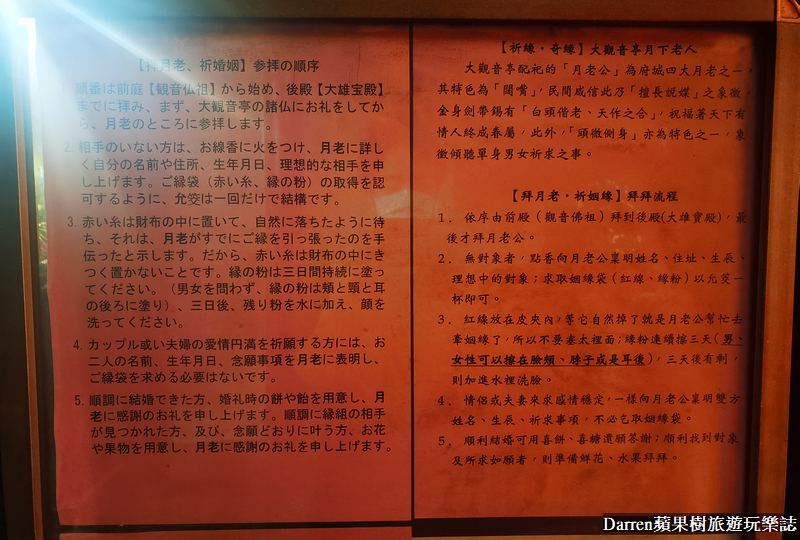 1.先依序從前殿拜到後殿,最後才拜月老公