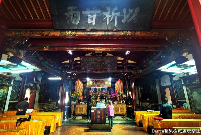 大觀音亭建於西元1678年,是台灣官建祭祀觀世音菩薩的首廟,進到大觀音亭可以看到金面慈祥的觀音菩薩在中央,信眾在專心念經讓人感到寧靜祥和,以祈甘雨的匾額,是台灣府知府周懋琦於同治十一年(1872)所獻,並落款署名兼護提學道 周懋琦敬書