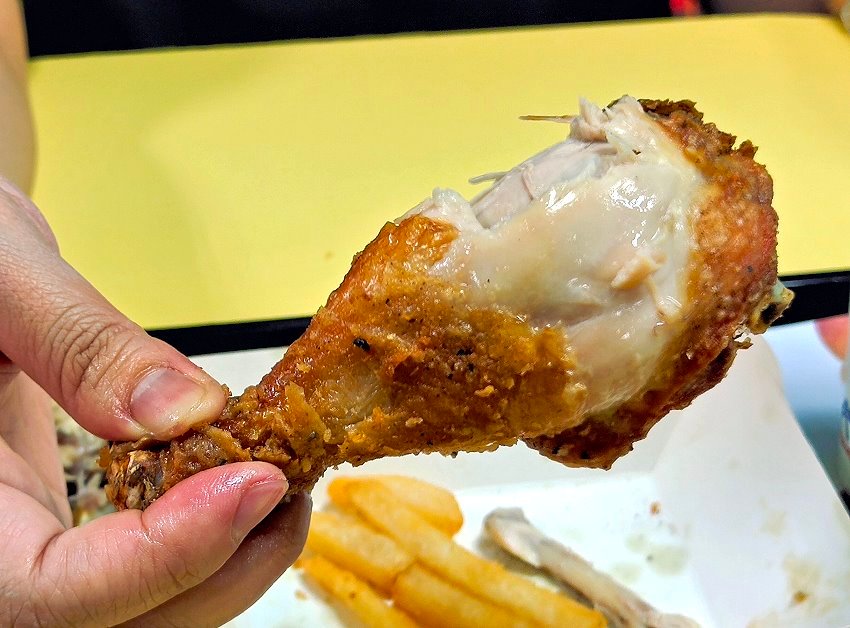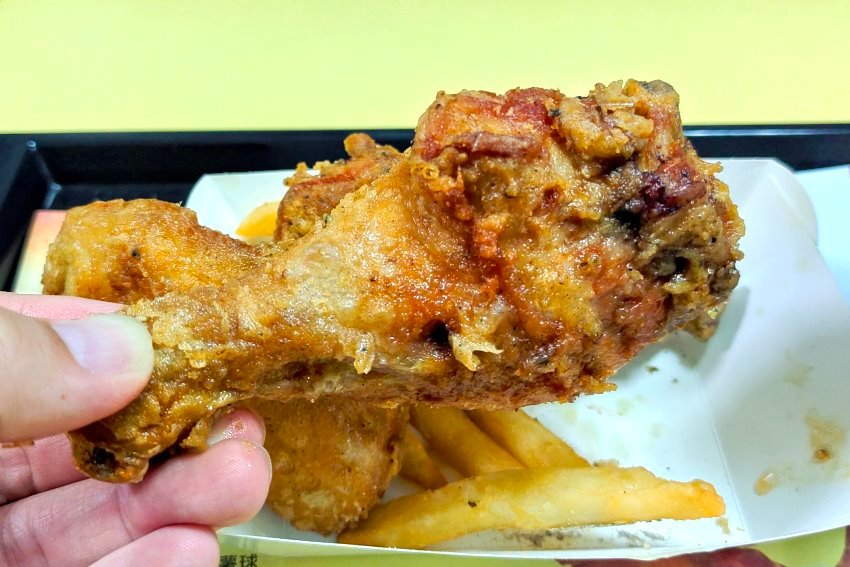 ▼當天拿到的炸雞腿彷彿比阿鋐炸雞大隻,不確定是不是我們的錯覺,但相對來說比較好吃是真的(笑)!