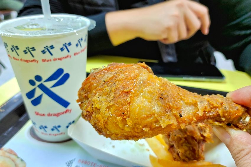 「藍蜻蜓速食專賣店」算是滿有自己特色的,第一次來不知道要什麼的朋友直接點炸雞套餐就對了~~因為他的靈魂就是那根炸雞腿啊!!炸雞翅也有不錯的表現,雞塊就比較弱一點~~我們覺得要看有沒有剛好遇到現炸起鍋的炸雞,因為口感真的有差,至少我們當天吃到的不會像有些網友說得比較乾柴,而且服務也不錯,座位區大還有洗手間,建議可以避開用餐時間來吃吃看!如果要等超過30分鐘的話就可以放棄先吃其他美食啦~~或是直接叫Uber Eats比較快囉!