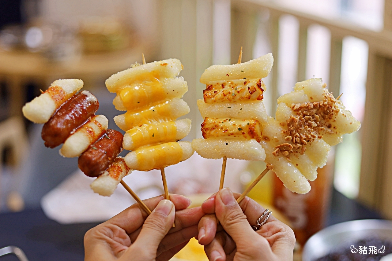韓國年糕也可以做成這種酥脆口感!把年糕加上創意變成一串串的手拿美食,年糕有嚼勁,我愛乳酪條跟德國香腸口味的。
