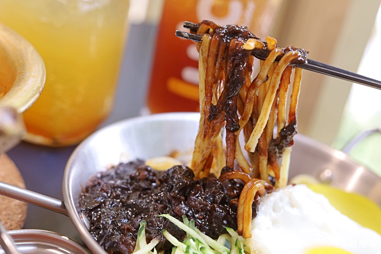 炸醬麵$120:韓劇裡面常常出現的黑麻麻國民美食這裡也有!老實說它長得很不起眼,但口感真的很不賴,深褐色的甜醬淋在Q彈麵條上,配上小黃瓜絲、太陽蛋,OH!!!彷彿置身韓國。
