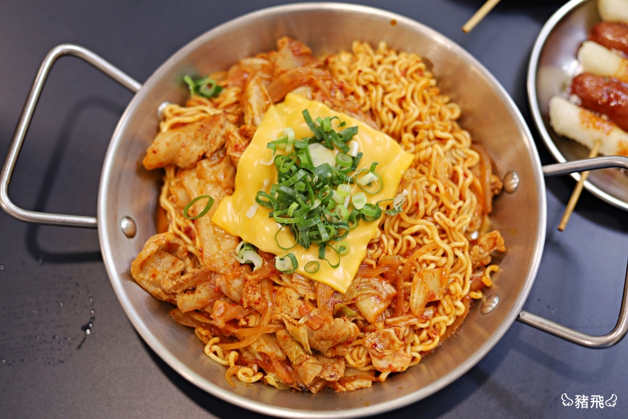 主角的韓國泡麵久泡不爛口感很Q彈,一口把融化起司跟麵條吃進嘴裡,perfect!