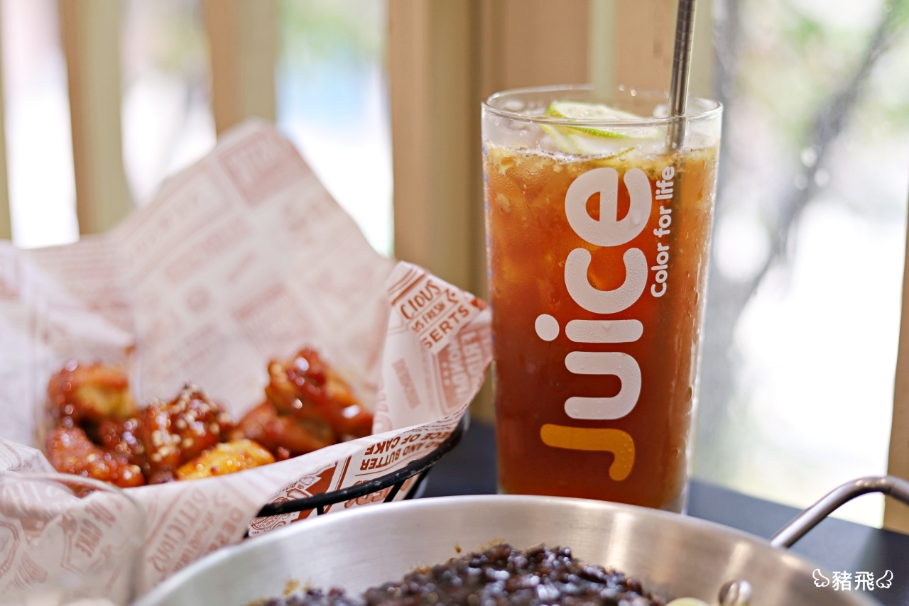 燻雞青蔬韓國黑糖餅漢堡$85:以前吃韓國黑糖餅都是夾入堅果、冰淇淋當下午茶吃,這裡的創意黑糖餅夾入鹹口味內餡,料很飽滿,吃起來鹹鹹甜甜的,喜歡這種撞擊滋味的朋友可以試試看。