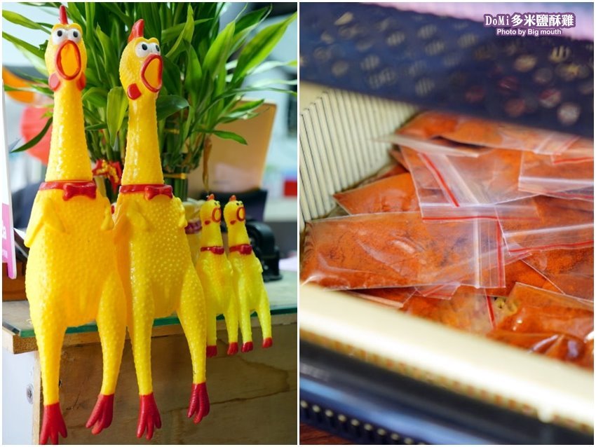 ▼櫃台邊也有放置大小隻的尖叫雞當作擺飾,看起來也非常療癒啊!一旁也有提供辣粉,有需要的朋友都可以自取唷~~