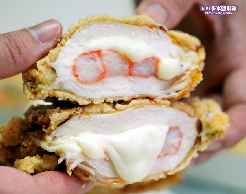 雞排控吃起來!!位於桃園平鎮振興西路上的「DoMi 多米鹽酥雞」,招牌的起司包餡雞排不僅口味多元,不管是明太子起司、黃金泡菜起司、雙倍起司或是隱藏版蟹肉棒起司雞排都非常熱賣,流洩而下的起司瀑布更是吸睛又邪惡,搭配香嫩多汁的雞排整個很可以啊!另外還有捲捲蔥油餅也是不輸宜蘭蔥油餅的美味,酥脆帶點Q彈的鹹甜味蕾,吃一次就被圈粉啦~~此外他們家也備有脫油機,像是蔬菜類、鹹酥雞等都會先脫油再裝袋,吃起來不會過於油膩感,相對罪惡感也減低不少(笑)~~可惜「多米鹽酥雞」沒開在我們家附近,不然天天來買都沒問題!