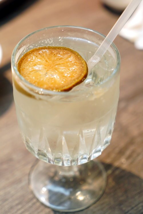 ▼有機鹹檸檬氣泡飲,他們家的有機鹹檸檬是自家醃漬二年而成,只能說老闆真的超狂啊~~搭配雪碧喝起來鹹香甘醇又帶點酸甜的味蕾,加上氣泡更增添清爽口感,飯後來一杯也挺不錯的!