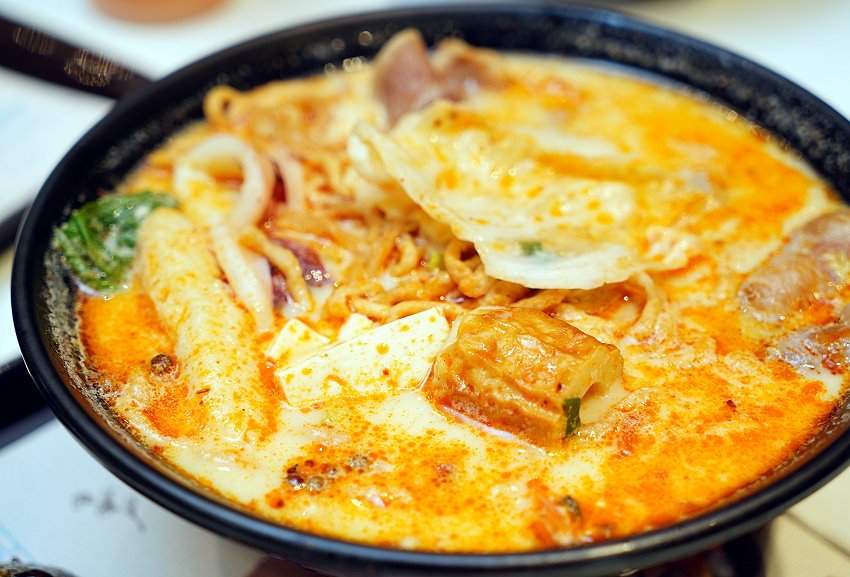 ▼麻辣牛奶+牛肉,這道可說是店內超人氣餐點,不僅有蝦子、蛤蜊、小卷、牛肉、豆腐、蔬菜、雞蛋等配料,而且湯頭也是非常厲害!