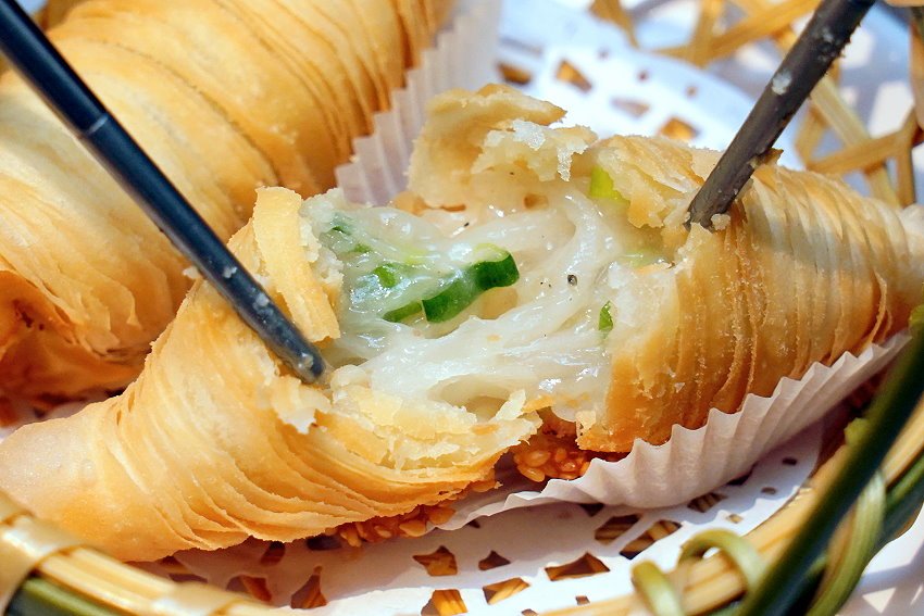 ▼蘿蔔絲酥餅(2顆),這道也是店內超人氣餐點之一,而且是殘酷的限量,賣完就沒了~~我們當天也是好說歹說才請師傅拿出珍藏的最後兩盤(笑)!吃起來層層酥脆,香酥的餅皮細緻而不油膩,搭配裡頭香滑濕潤又清甜的蘿蔔絲更是層次多元,簡單調味就很好吃!