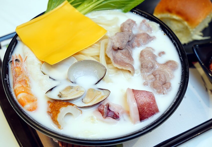 ▼牛奶起司+牛肉,這款也是店內人氣餐點之一,光是看到乳白色的濃醇湯頭加上起司片,就先給滿分了(笑)!喝起來真的有像在喝熱牛奶的fu~加上起司更是提襯不少香氣,讓湯頭更加有層次!