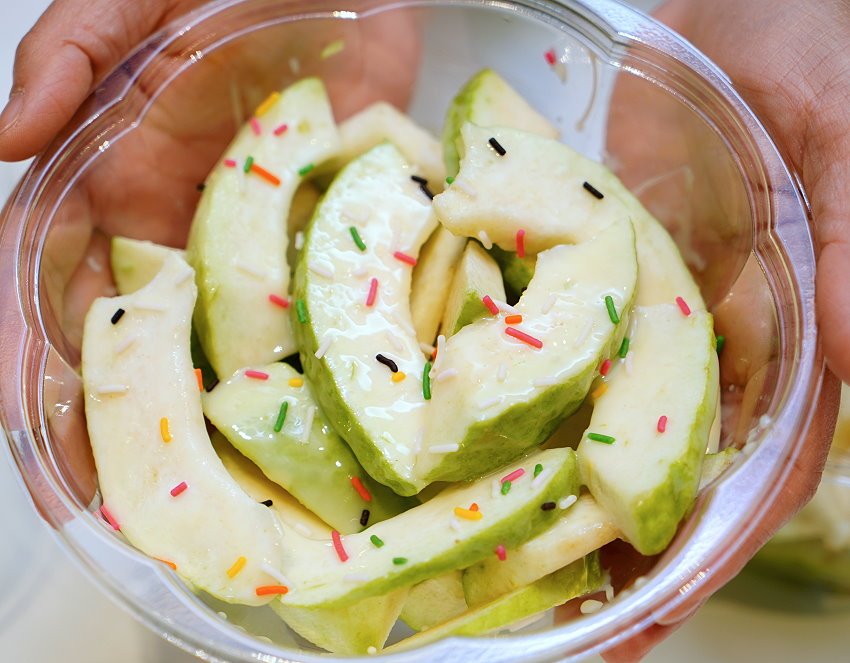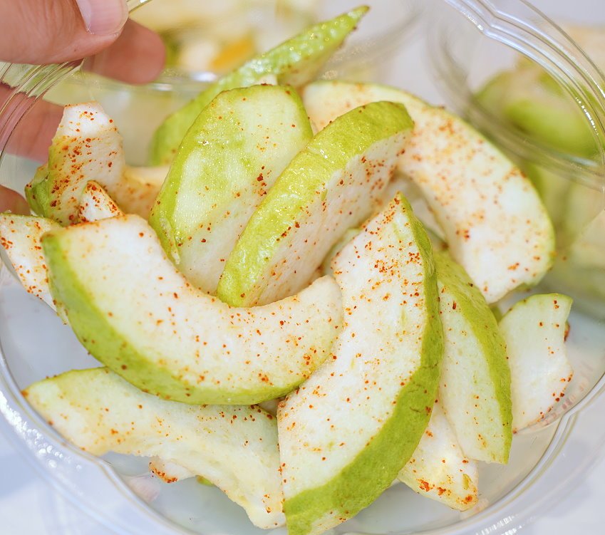 ▼他們家的芭樂都是新鮮現切,大顆又香甜,搭配調味料更是加了不少分數!
