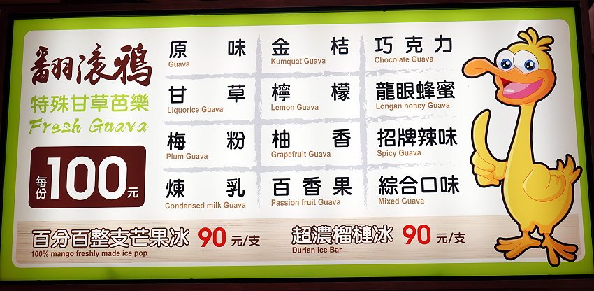 ▼「翻滾鴉特殊甘草芭樂」就在北回木瓜牛奶跟賀穀章魚燒的中間,距離手扶梯也相當近,大家走過路過可別錯過啦!