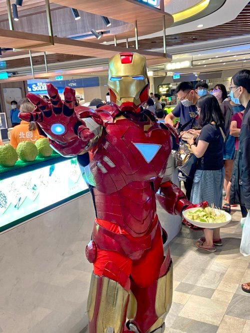 ▼開幕前幾天都有SG請大家試吃甘草芭樂,沒想到連鋼鐵人都來啦~~看來人氣也挺旺的!!