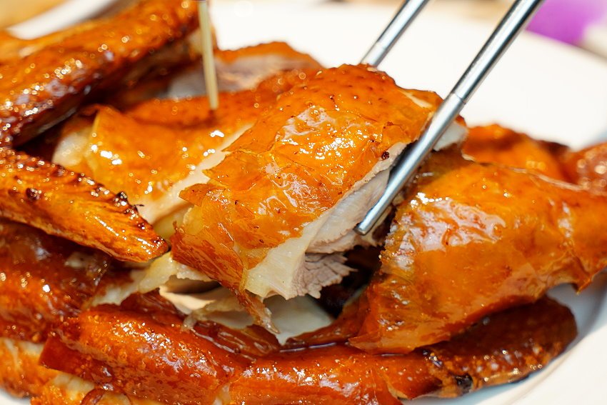 ▼這道「江南炸子雞」採用的是放養足月的古早雞,不僅體型小、活動力強,肉質緊實香Q,脂肪厚實,拿來做這道再適合不過!製程也非常搞剛,光是雞隻吊乾靜置就得花上一天,加上一勺勺熱油均勻淋上全雞,需要足夠的經驗與火候才能造就皮脆肉緊美味炸子雞;一口咬下,不僅能吃到又薄又酥、略帶甜美的香脆外皮,搭配Q彈、飽滿又帶有滿滿肉汁的肉質,既能吃到雞肉原本的甘甜風味,搭配那銷魂的酥脆外皮更是邪惡,入口也不會有油膩感,讓人一口接一口停不下來啊!