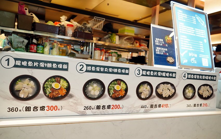 ▼龍膽魚片湯+龍膽水餃,一旁附有兩道小菜,一餐可以吃到滿滿海鮮,感覺營養滿分啊!