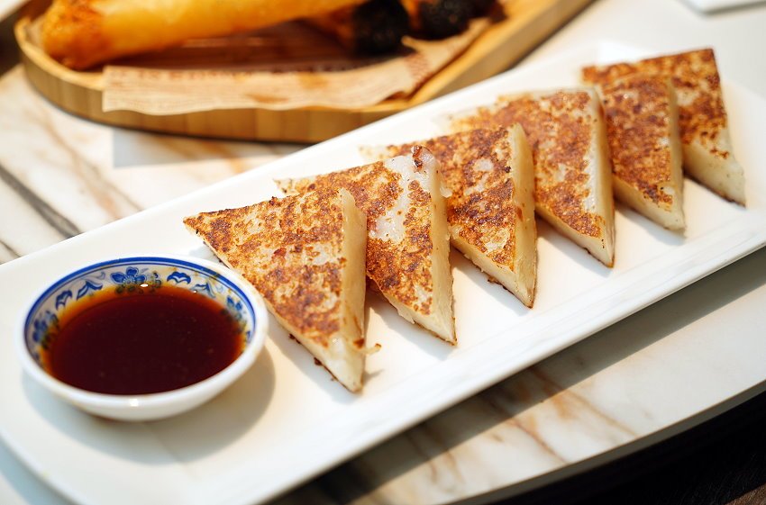 ▼港式蘿蔔糕,自製的蘿蔔糕裡頭加了肝腸、臘腸等配料,再煎至表面金黃酥脆,光看就讓人嚥了不少口味!吃起來柔嫩又帶點微微鹹香的滋味,恰恰的口感更增添了不少香氣,沾附醬料更是提味好吃!
