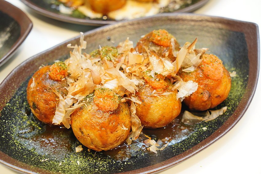 ▼沒多久章魚燒上桌啦!!!這款是九州博多明太子風味章魚燒,裡頭足足有六大顆,吃起來其實也挺有飽足感的!