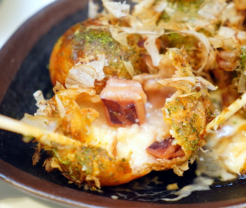 ▼熔岩雙饗起司風味章魚燒也是超人氣口味,除了採用日本醬料之外,還使用了fondue起士鍋搭配瑞士起司等兩種起司下去調製而成,光看就非常邪惡啊!
