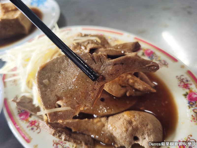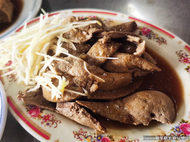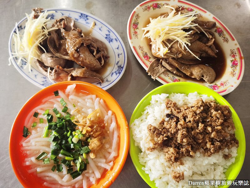這次點了米粉湯、肉燥飯、豬心、豬肝加一塊油豆腐,其實蠻多人來這裡都會點一個主食加一盤黑白切就能吃到很飽又便宜