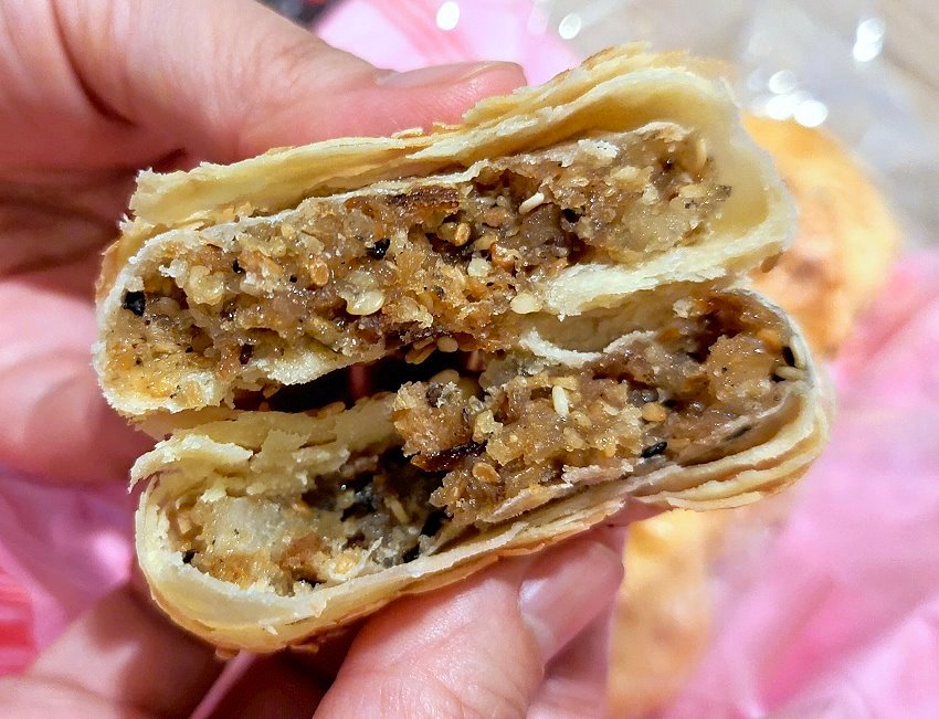 ▼一口咬下,外皮非常薄酥鬆軟,裡頭的內餡紮實香Q不黏牙,有點像是傳統泡餅+太陽餅的感覺,重點是不會過於甜膩,很容易一口接一口停不下來!