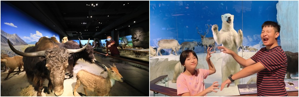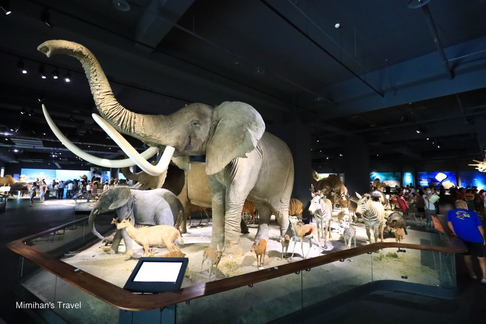 奇美博物館裡「動物廳」是小朋友最愛的區域,裡面展出大象、犀牛、獅子、北極熊、阿拉斯加麋鹿⋯等超級多大大小小的動物標本與化石,透過生命演化的長廊、生之浩瀚、飛翔的世界等面向去見證地球生命的奧妙。