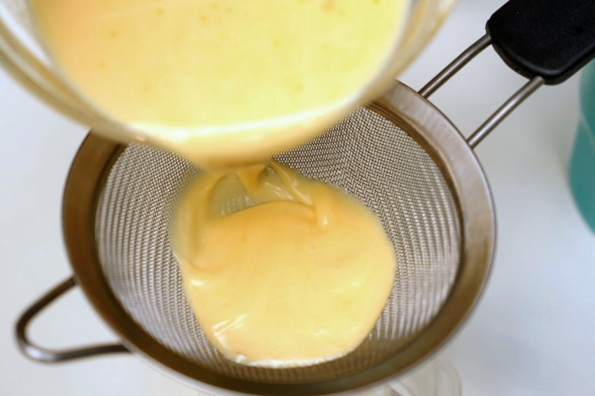 3.將步驟2攪拌均勻的布丁液過濾(將不要的蛋筋濾除,否則布丁蒸好會稍微醜醜的)
