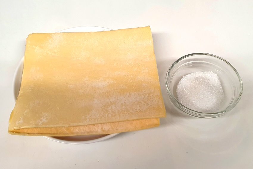 2.在起酥片上均勻撒上砂糖,份量可自行調整(視個人口味)