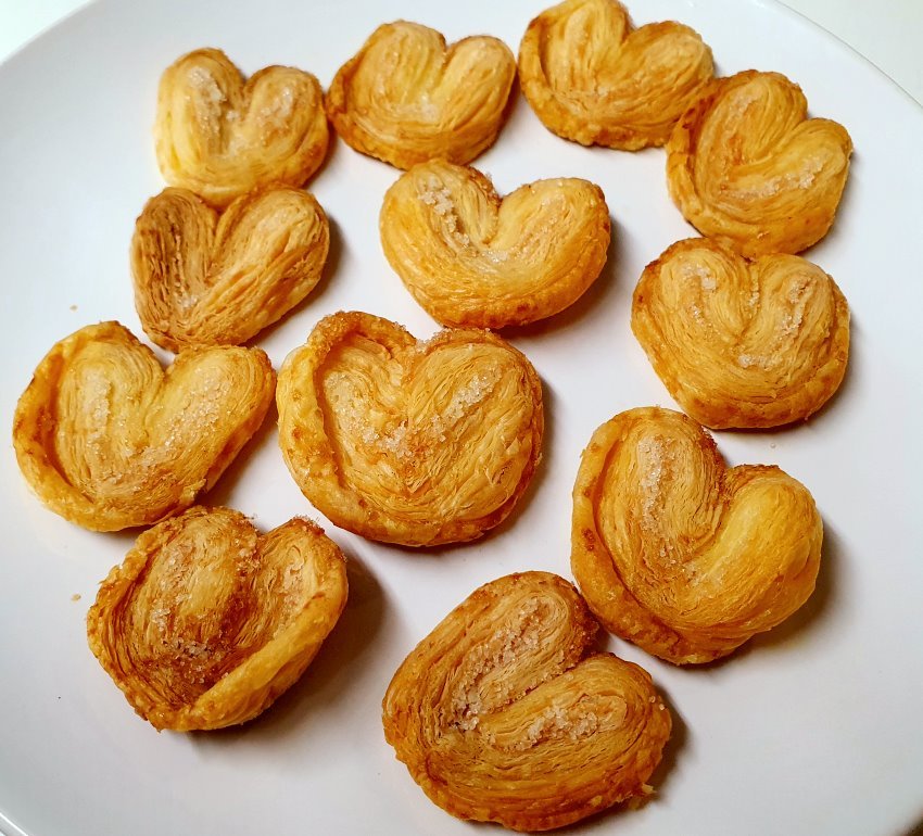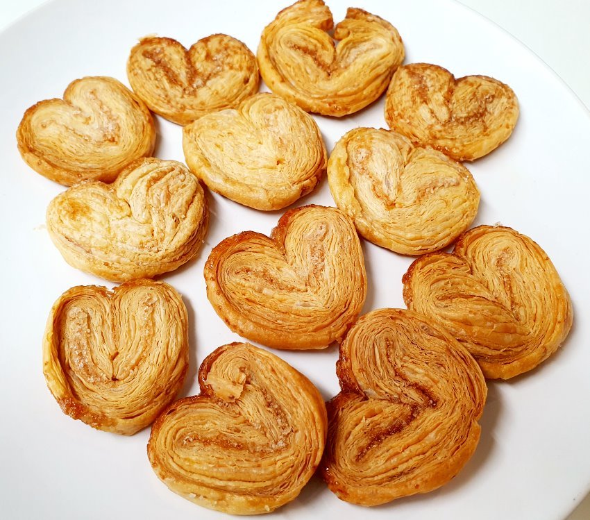 ▼蝴蝶酥成品看起來也挺療癒的~~但小倆口都說這不是蝴蝶酥,而是愛心酥……沒關係啦!!總之好吃就好,哈哈哈!