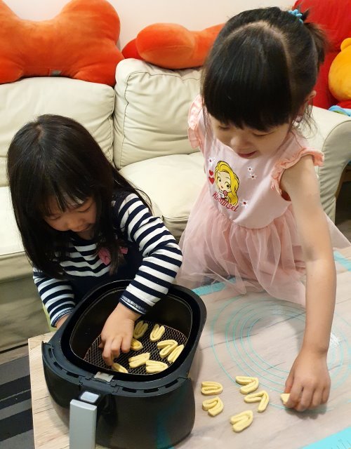 ▼氣炸鍋設定180度10分鐘即可,大家可以視各家品牌來稍微調整一下溫度、時間!如果家中沒有氣炸鍋的朋友也可以直接用烤箱唷~~只是時間要再長一點,約莫15分鐘左右,但也不要太久以免臭灰搭啦!