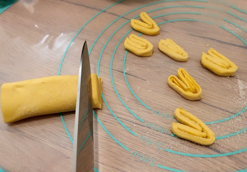 ▼大家記得中間要留點空隙,給蝴蝶酥一點膨脹的空間,不然很容易黏在一起,形狀就沒這麼好看啦!