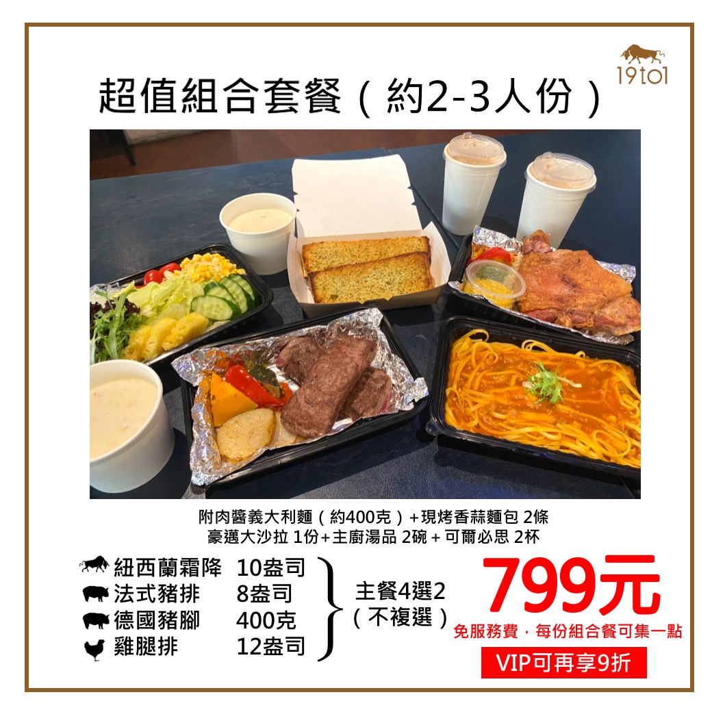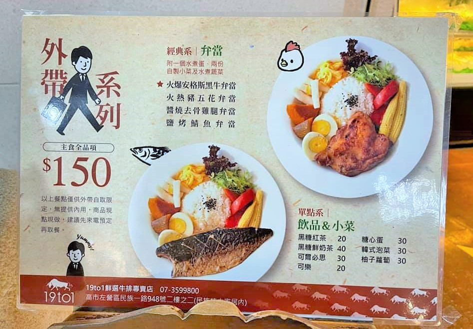 高雄知名的19to1鮮選牛排專賣店,也推出了外帶餐盒、超值組合套餐