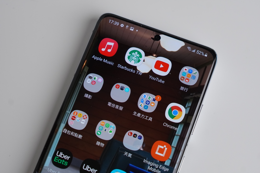 轉移完成後就可以在新的 Samsung Galaxy S21 Ultra 5G 上看到從 iPhone 轉移的資料囉!例如我在舊手機上把旅遊相關的 app、攝影相關的 app、電信相關 app 以及生產力工具分門別類放在不同資料夾中,轉移到新的三星手機後,Smart Switch 會聰明的幫我把資料夾都整理好,app 的排序方式也會和舊手機一樣,可以無縫接軌按照以前的習慣繼續使用。