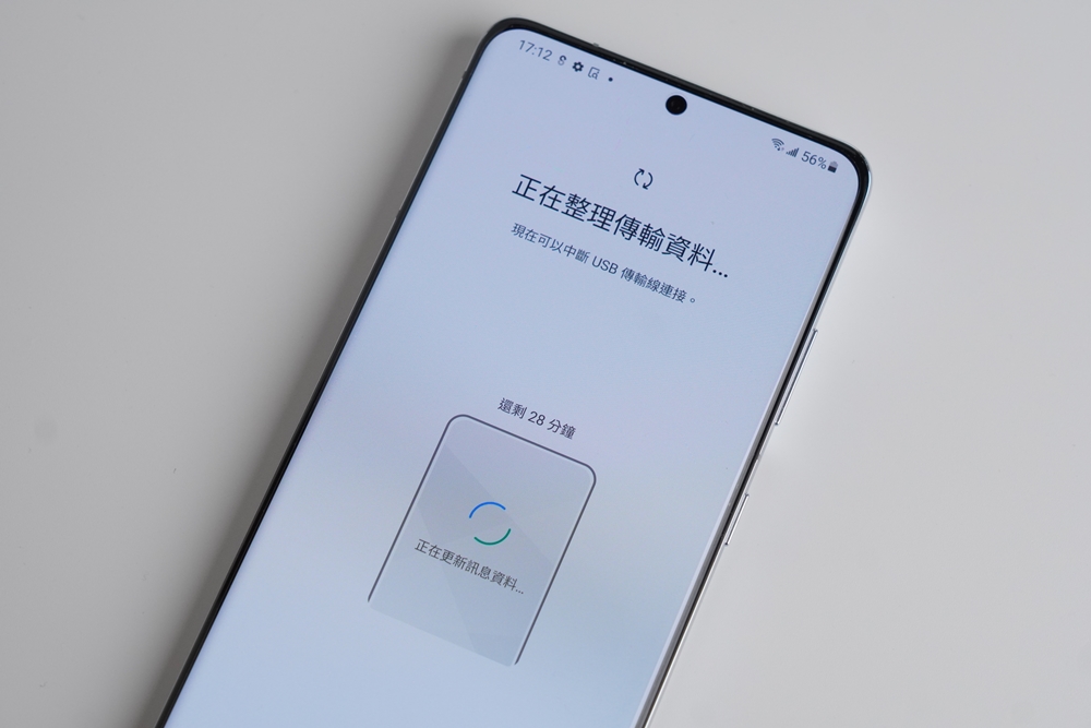 以舊資料約 114GB 而言,轉移時間大概會需要將近兩小時,轉移時間會依照需要轉移的資料多寡而定,傳輸完資料之後就可以移除傳輸線,接下來手機會自動幫你整理傳入的資料,例如將下載下來的 app 歸類成原本的資料夾方式等等。