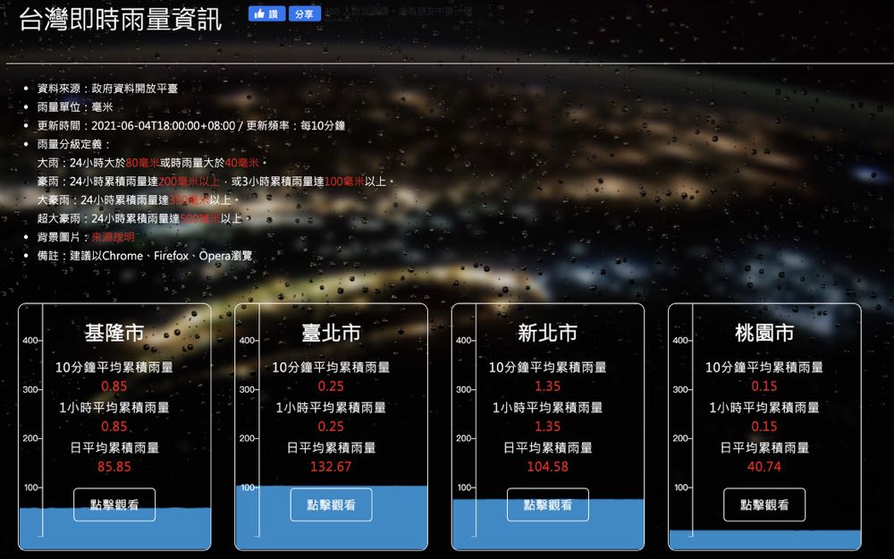 雨到底有多大?台灣即時雨量資訊 讓你用看的就知道!