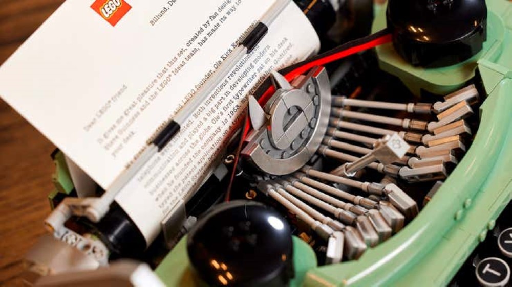 LEGO Typewriter 最初是由來自英國樂高愛好者 Steve Guinness 所設計。他所參與的 LEGO IDEAS 計畫,只要原創作品從粉絲手中獲得 10,000 張票的支持,公司就會考慮將作品重新改良,成為全球發售的商品。