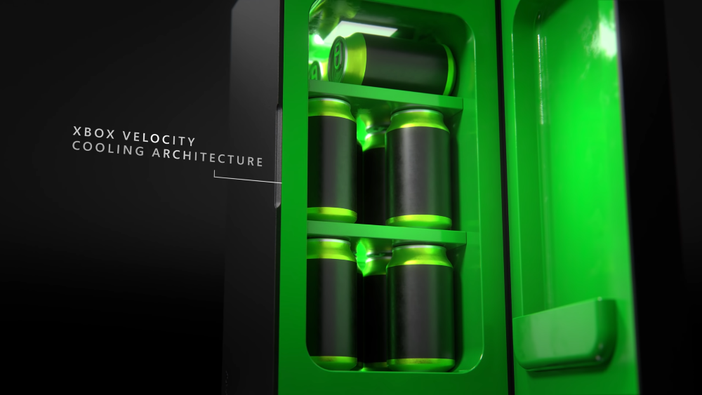 ▼ 微軟進一步在預告片上表示,該冰箱採用了「Xbox Series X 的垂直風道設計」(當然不是)。