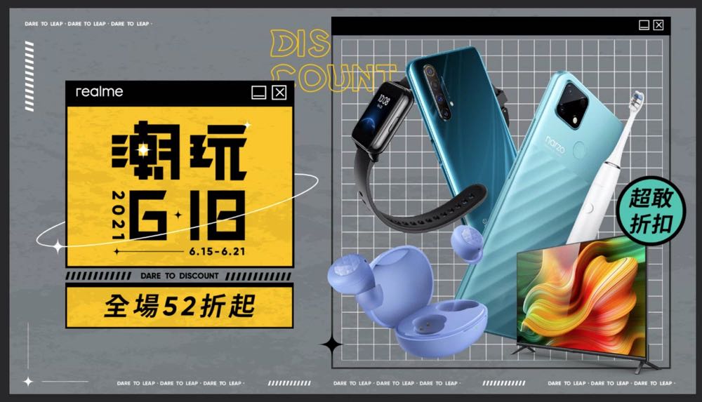除眾所期待遊戲機 realme narzo 30A 全新登場外,6 月 17 日至 6 月 19 日還能以 $10,990 元驚喜價購入市場夯機 realme X7 Pro,現省 $4,000 元!不僅能選購 C 位色一手掌握潮流,還可超值擁有天璣 1000+ 5G 旗艦處理器和 120Hz AMOLED 柔性螢幕等強悍內在,輕潮 5G 首選呼籲用戶千萬把握;除此之外,想添購居家用品的消費者們,realme 也於 618 正檔期間準備了滿滿誠意,以 888 元千元不到超殺價格,購入realme 聲波電動牙刷 M1 和三入刷頭組限定組合,若想替換家中電視也務必設定通知搶購下殺超過 2千元的 realme 43 吋智慧連網顯示器,以超省 7,777 元限定價擁有更舒適寬廣的觀看體驗。