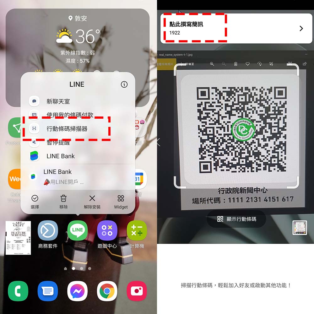 除此之外,LINE 也提供一項快速掃描的小技巧,只需兩步驟即可完成登記,且 iOS、Android 版本都適用此功能: